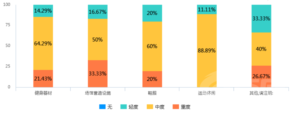 此外,按经营品类分析可以看出,运动休闲业受影响相对较轻,未出现重度影响,而场馆设施类受影响相对较重,有三分之一的企业受到了重度影响,不过该行业对于市场趋势也最为乐观。