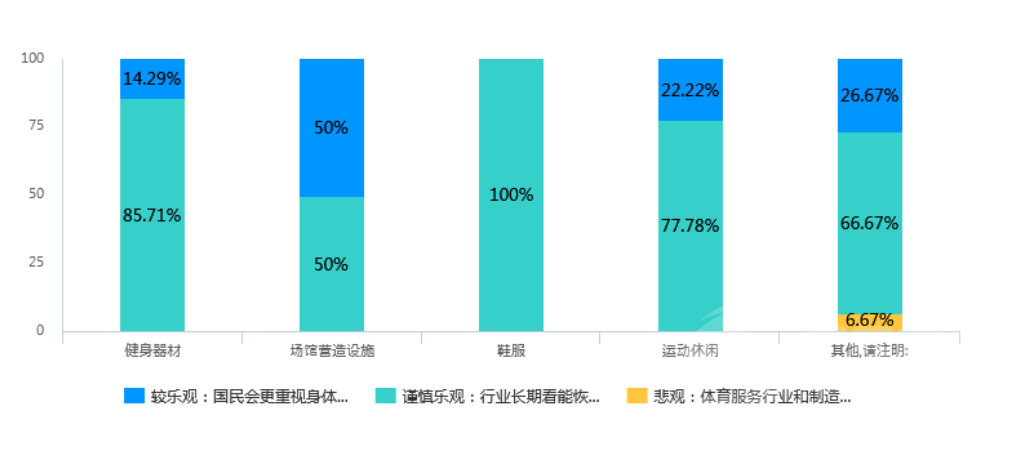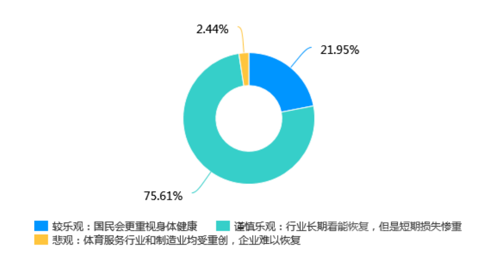 不过,面对疫情的肆虐以及不同程度的运营困难,仍有大部分企业认为,疫情过后其所处行业经过长期发展可以有效得到恢复,但近期仍损失惨重,也有一部分企业持乐观态度,认为国民会更重视身体健康,这将为体育产业市场带来新的增长点,这一观点主要来自于场馆营造设施业。