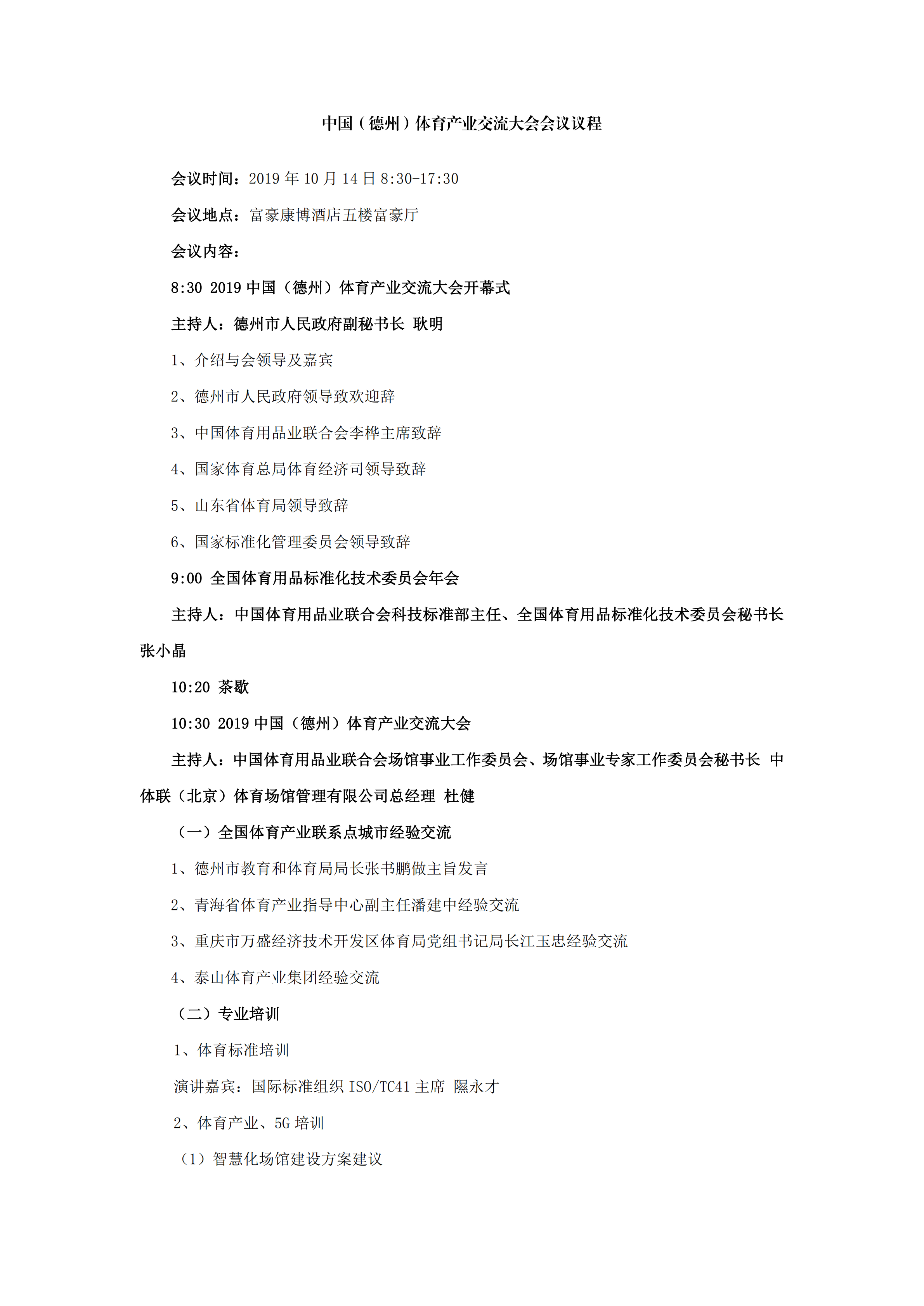 德州会议会议议程
