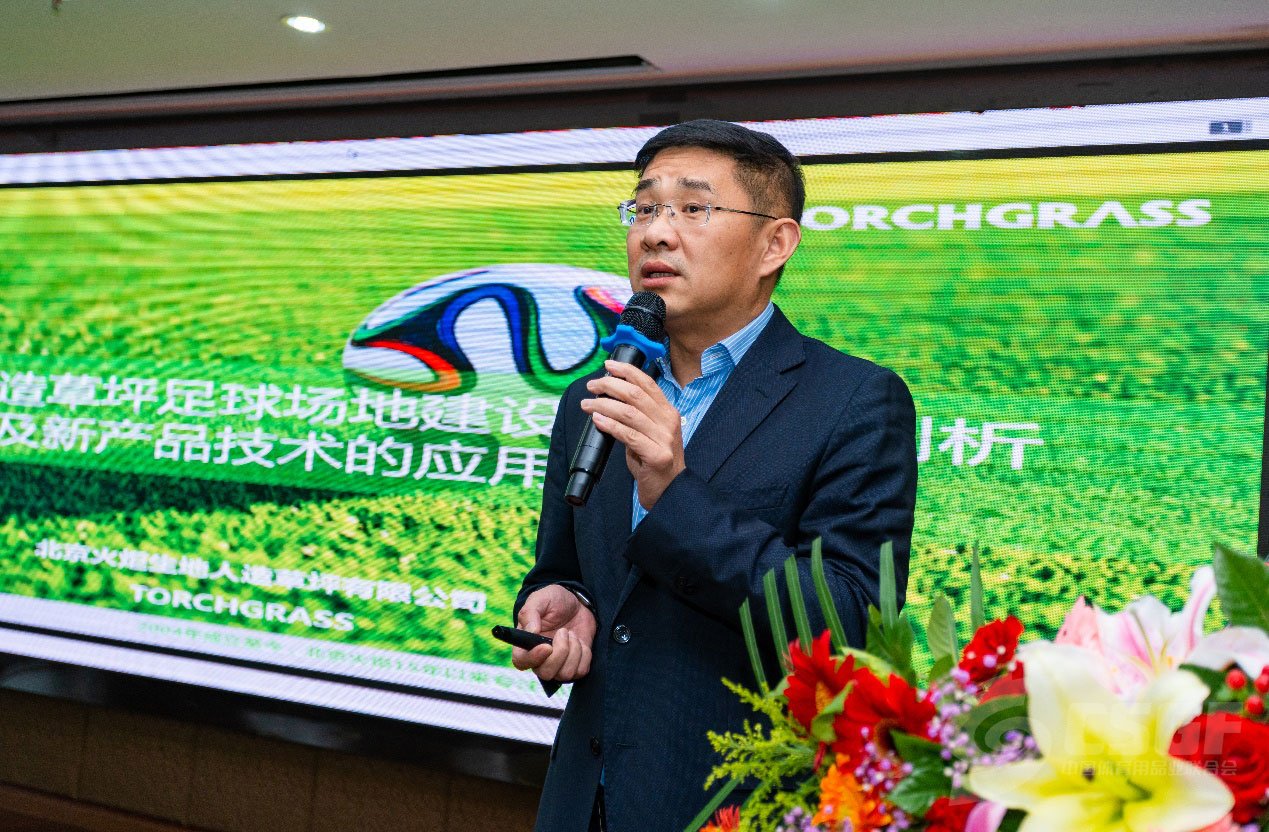 北京火炬生地人造草坪有限公司董事长杨毅良做《人造草坪足球场建设新标准关键点剖析》专题发言