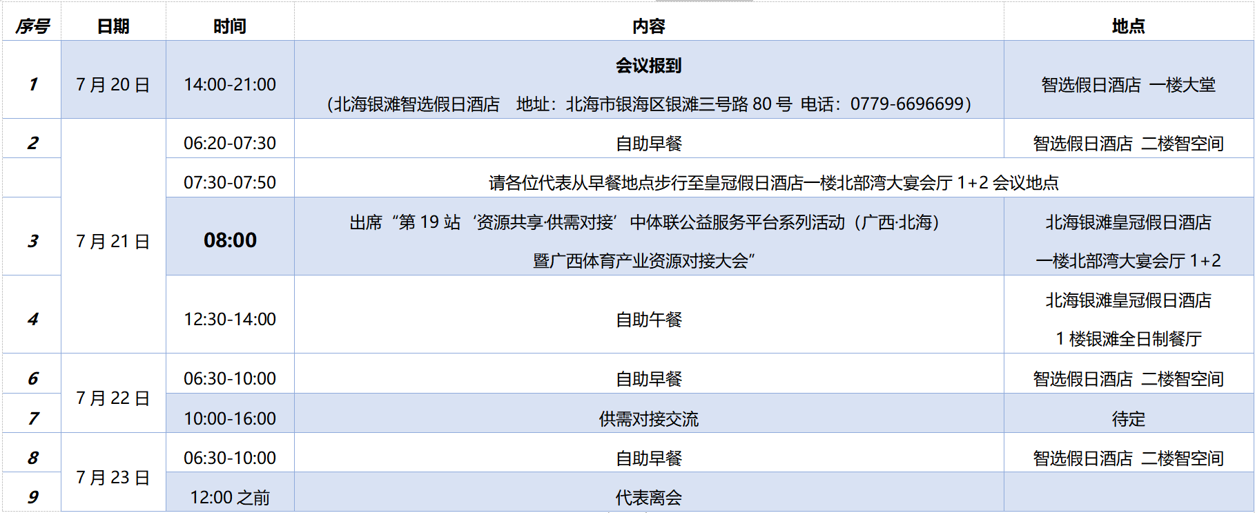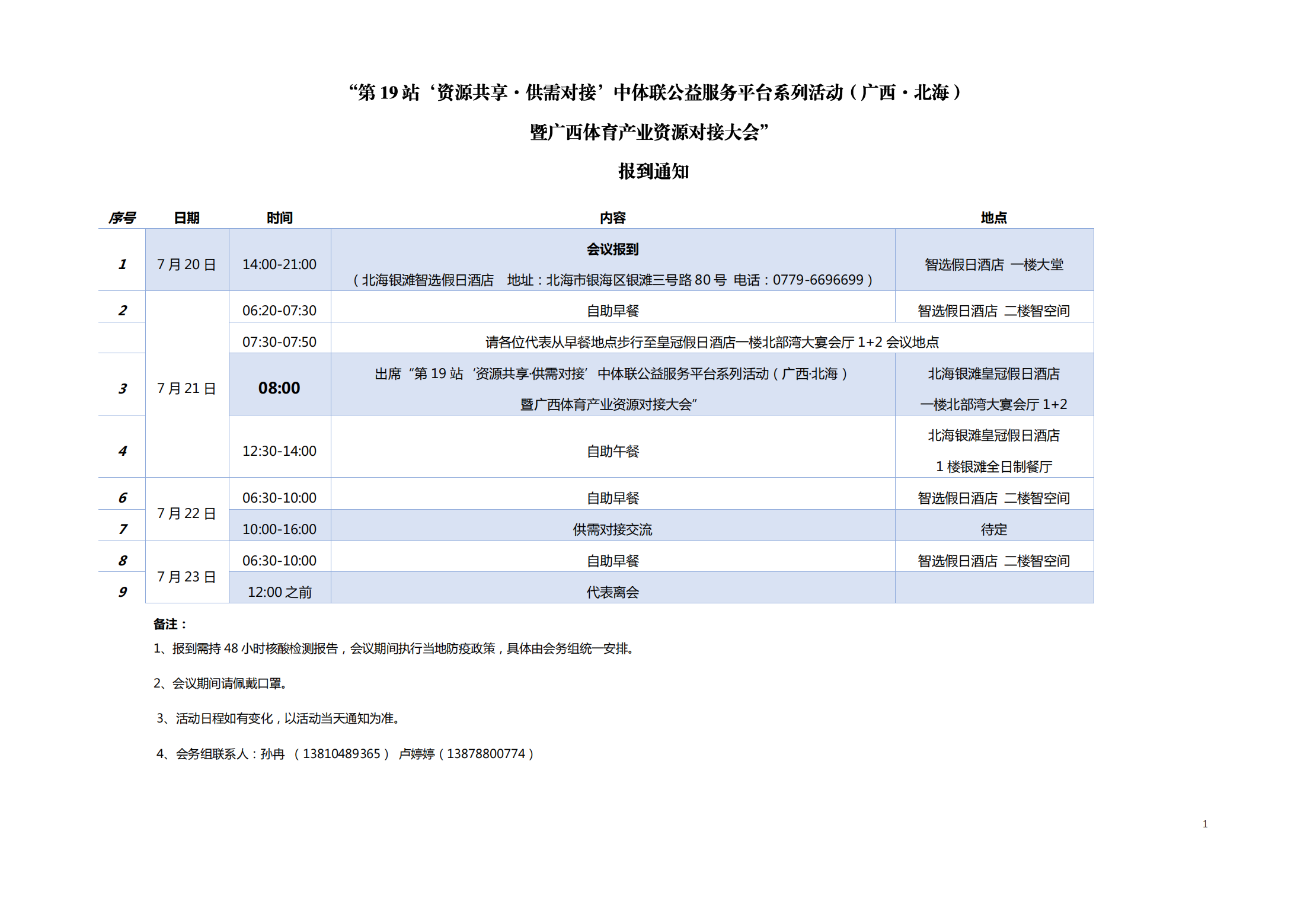 “第19站‘资源共享·供需对接’中体联公益服务平台系列活动(广西·北海)报到通知