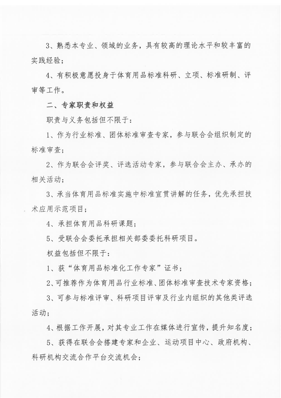 4、有积极意愿投身于体育用品标准科研、立项、标准研制、评审等工作。