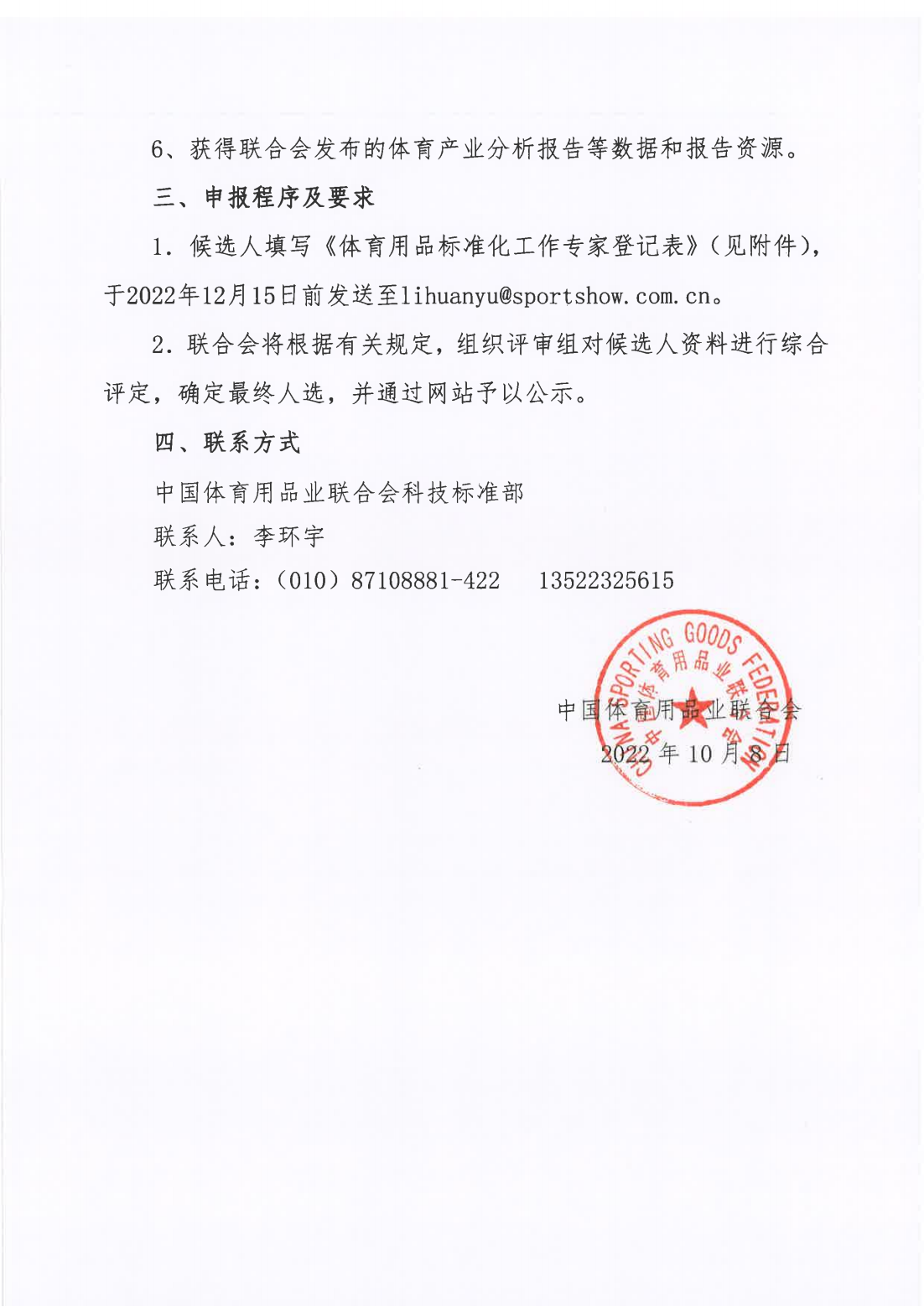 2、可推荐作为体育用品行业标准、团体标准审查技术专家资格;