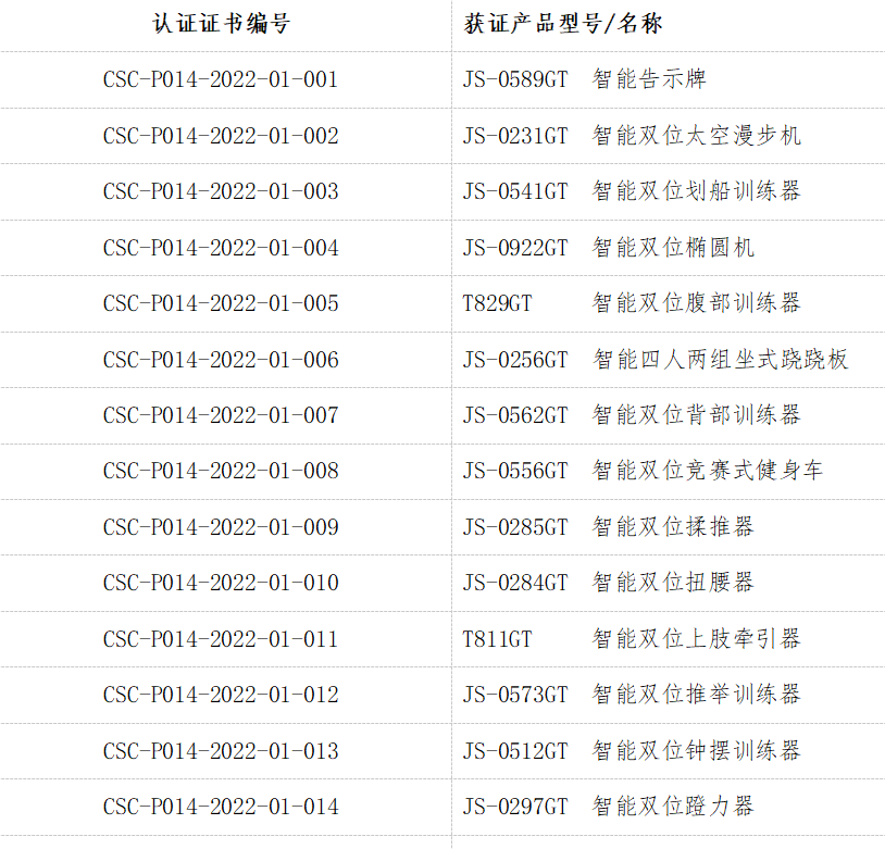 澳瑞特体育产业股份有限公司获得由中体联(北京)认证服务有限公司颁发的二代室外健身器材产品认证证书,证书明细如下:(共14张)。特此公告。