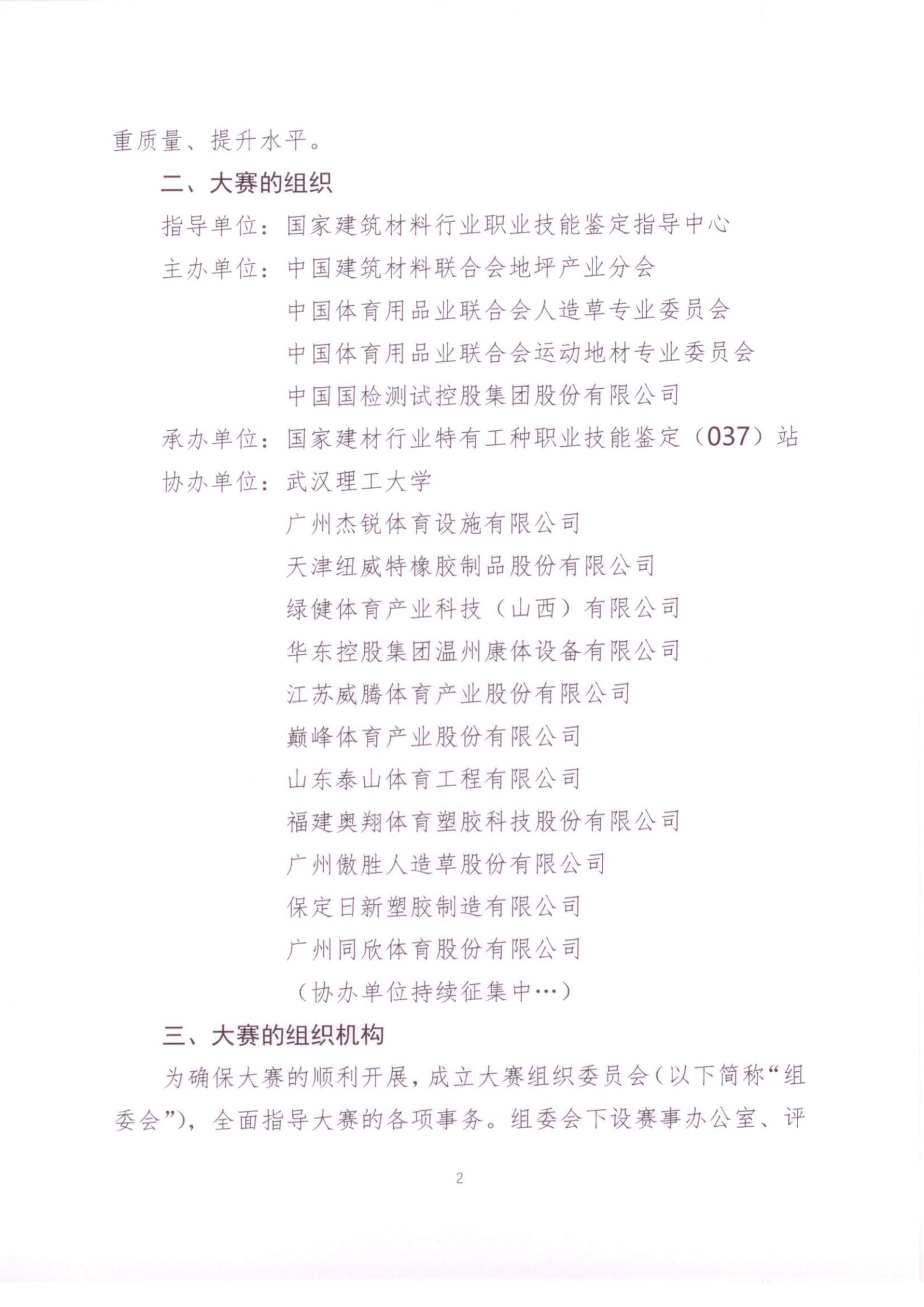 1.竞赛项目:现浇型运动地坪、预制型运动地坪及人造草运动地坪等三项内容;