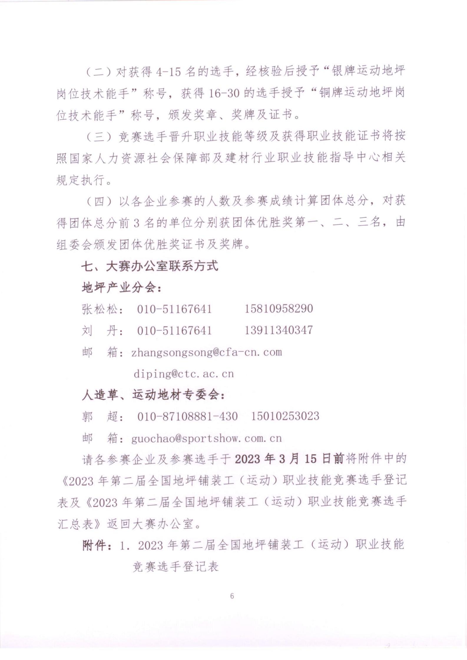 (二)对获得4-15名的选手,经核验后授予“银牌运动地坪岗位技术能手”称号,获得16-30的选手授予“铜牌运动地坪岗位技术能手”称号,颁发奖章、奖牌及证书。