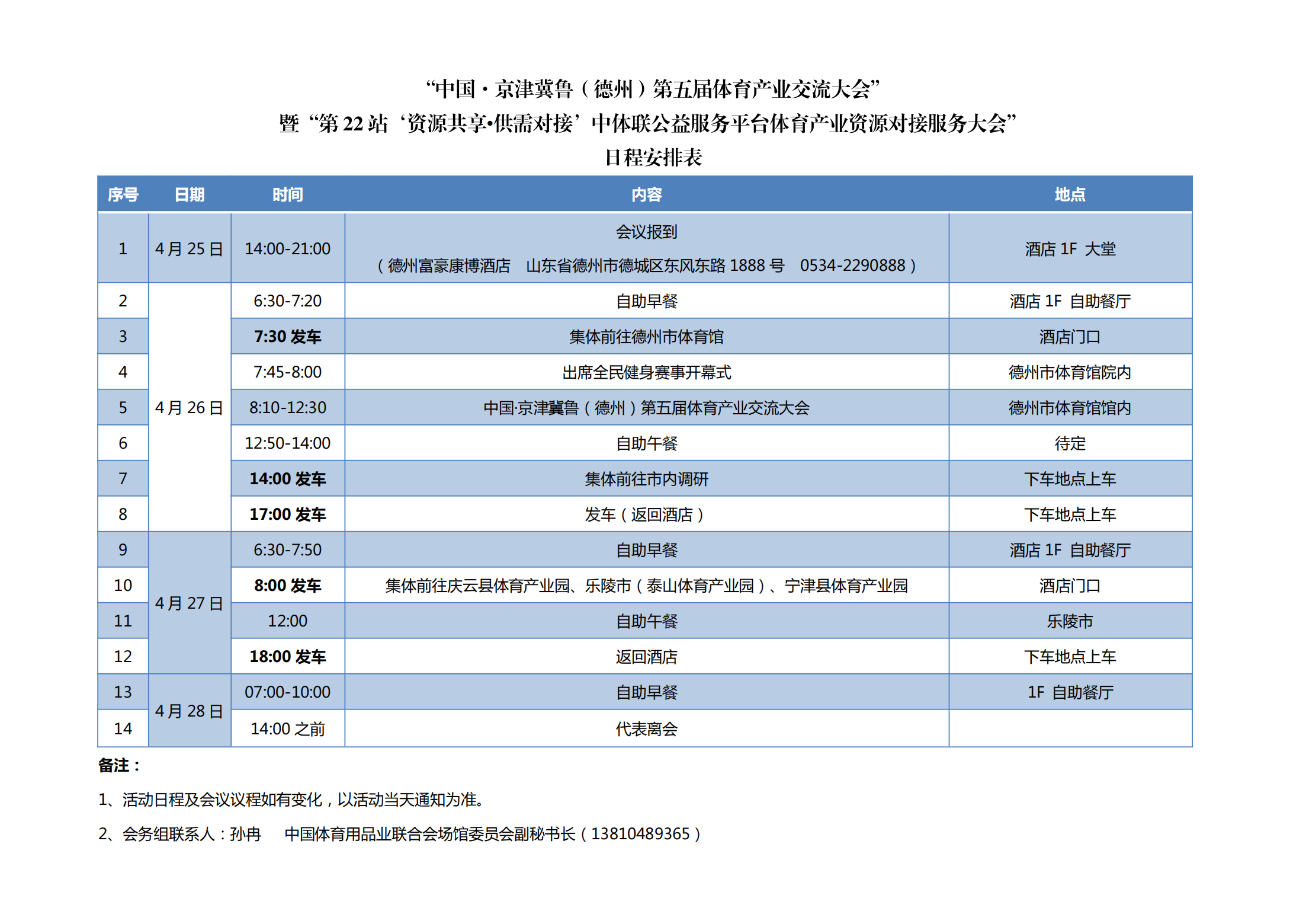 “中国·京津冀鲁(德州)第五届体育产业交流大会”日程安排表