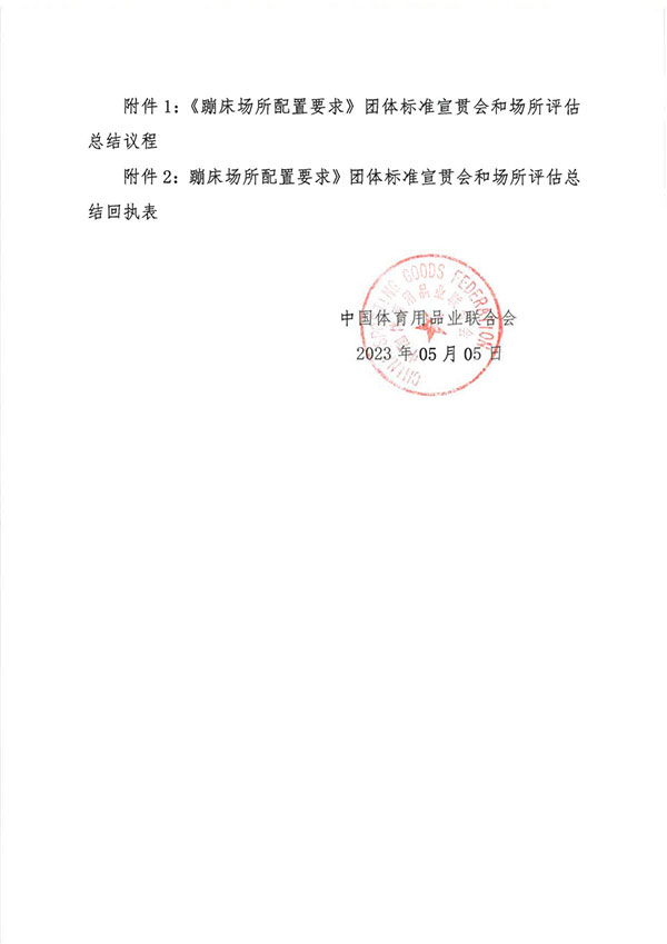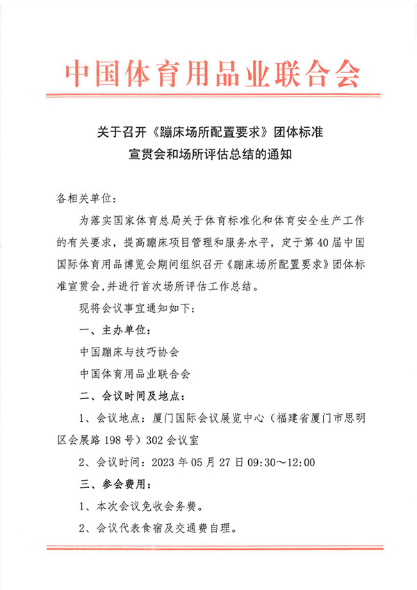 关于召开《蹦床场所配置要求》团体标准宣贯会和场所评估总结的通知
