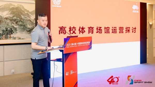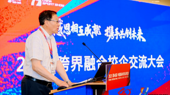 中国体育用品业联合会李桦主席出席2023跨界融合校企交流大会并致辞
