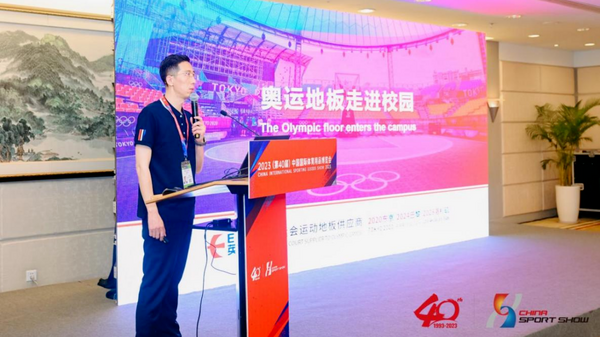 河北英利奥体育用品有限公司市场总监朱建功作《东京奥运会3对3篮球场地给我们的启示》的专题报告