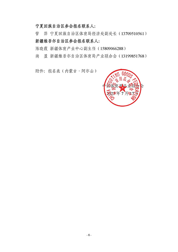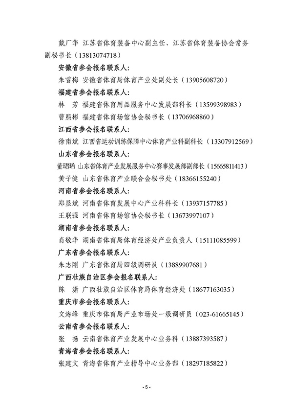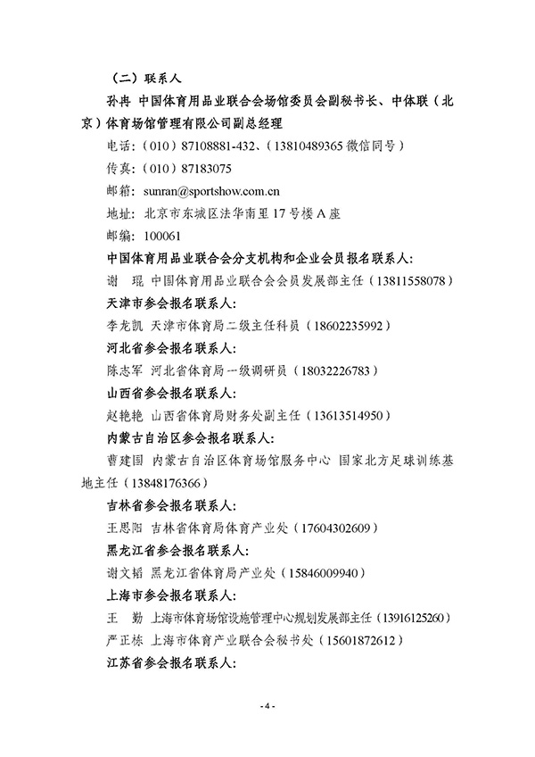 中国体育用品业联合会分支机构和企业会员报名联系人: