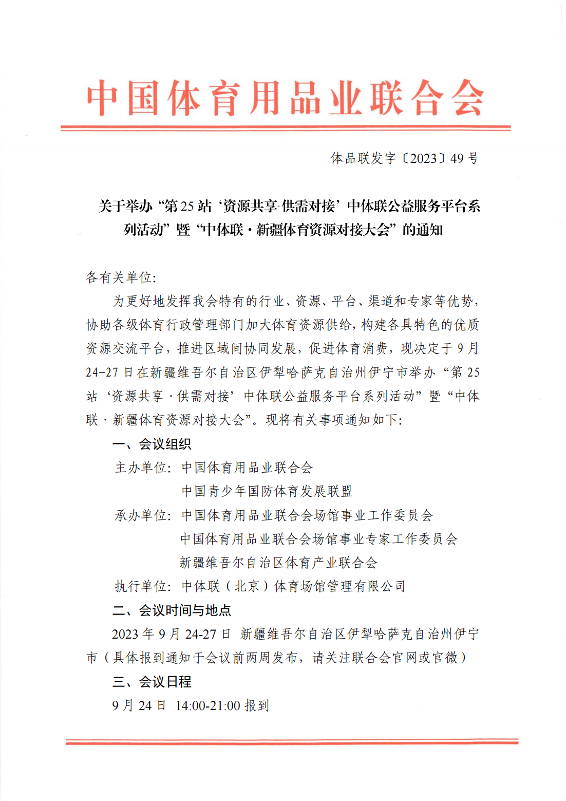 关于举办“第25站‘资源共享·供需对接’中体联公益服务平台系列活动”的通知