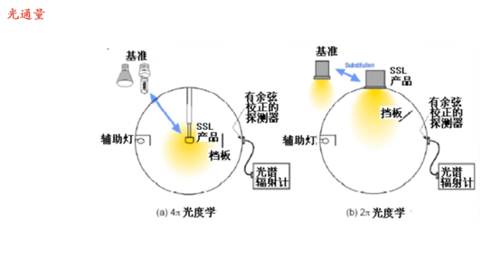 该标准对移动照明灯具的光通量做出了具体要求:可变焦距离或者可调节光束角的灯具,应将灯具调至最大值焦距或最大光束角再测试;发光角度小于或等于180°的灯具,在2Π几何球面内进行测试,最小球直径应大于或等于光线进入球面上端口最大直径的3倍;发光角度大于180°的灯具,在4Π几何球面内进行测试,光的总表面积(包括非发光面)应小于球壁总表面积的2%;在灯具启动后30s~120s进行测试;取3个灯具进行测试,测试结果的平均值为该灯具的光通量。