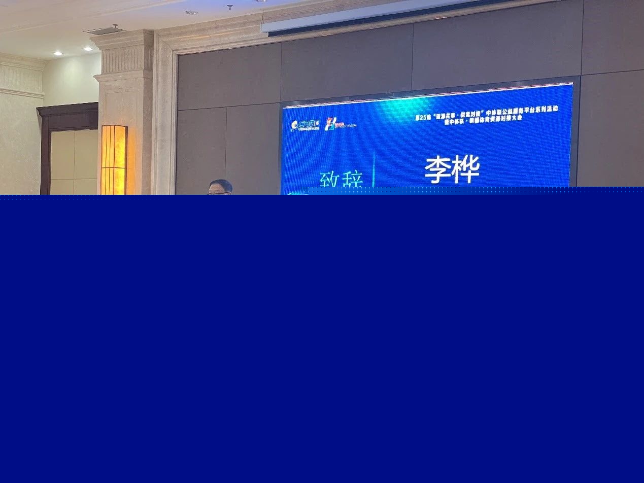 中国体育用品业联合会主席李桦致辞。他表示,站在新的历史起点,要求我们主动对接国家战略、人民的需求和市场的趋势。今年的政府工作报告在工作建议部分提出,着力扩大国内需求,把恢复和扩大消费摆在优先位置,推动生活服务消费恢复。近期,国家体育总局办公厅印发《关于恢复和扩大体育消费的工作方案》。强调,把恢复和扩大体育消费摆在优先位置,加大优质体育产品和服务供给、优化体育消费结构,切实发挥体育在扩大内需、挖掘国内市场潜力、保障和改善民生等工作中的综合作用,为助力经济增长、构建新发展格局贡献力量。他指出“‘资源共享·供需对接’中体联公益服务平台系列活动”是中国体育用品业联合会打造的又一个聚焦资源、促进交流的品牌活动。活动以供需对接为目标,围绕不同地区对体育消费多元化、差异化、品质化需求,充分发挥自身特有的行业优势、资源优势、平台优势、渠道优势、专家优势,丰富体育供给,探索建立优质体育资源市场化横向流动体系。本次活动是“‘资源共享·供需对接’中体联公益服务平台系列活动”首次落地新疆维吾尔自治区,落地伊犁哈萨克自治州,希望以此为契机开启体育产业新征程。