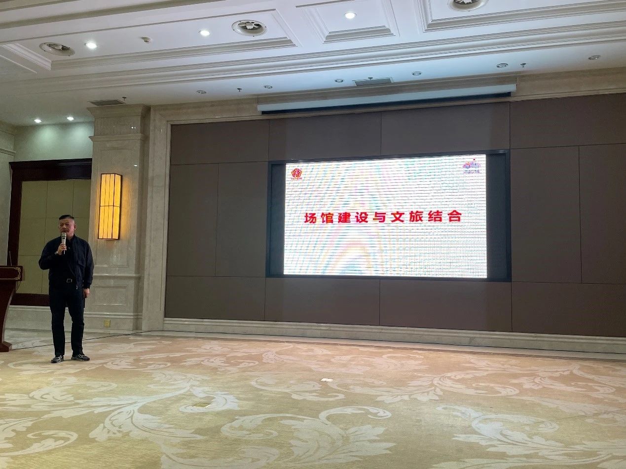 浙江大丰体育设备有限公司为杭州亚运会36个场馆提供了演艺装备智造、场馆核心产品和整体解决方案。本次会议,副总裁吴坚与大家分享了《场馆建设与文旅结合》。