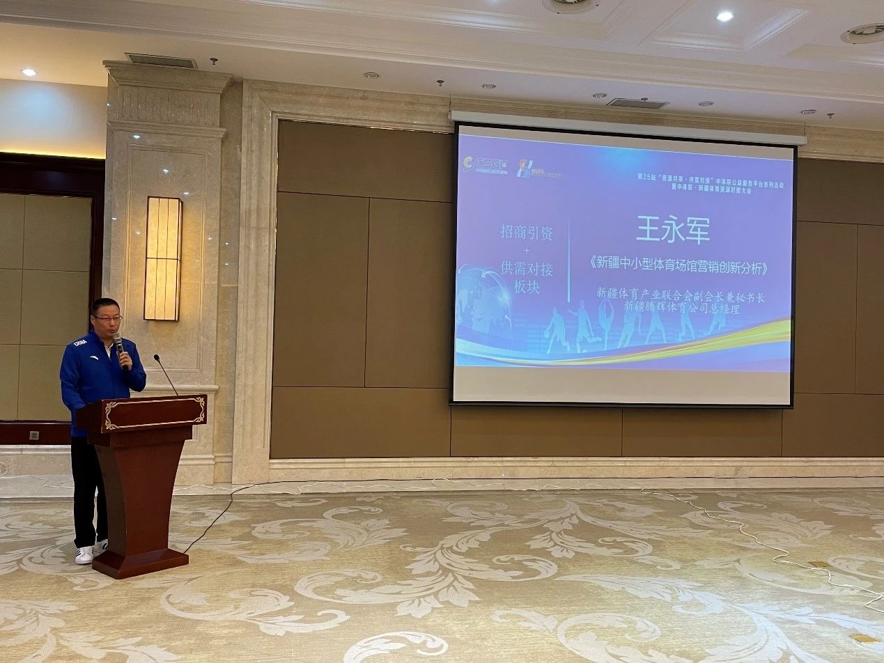 新疆体育产业联合会副会长兼秘书长王永军站在自治区整体场馆运营角度和大家分享了新疆体育场馆运营管理经验。
