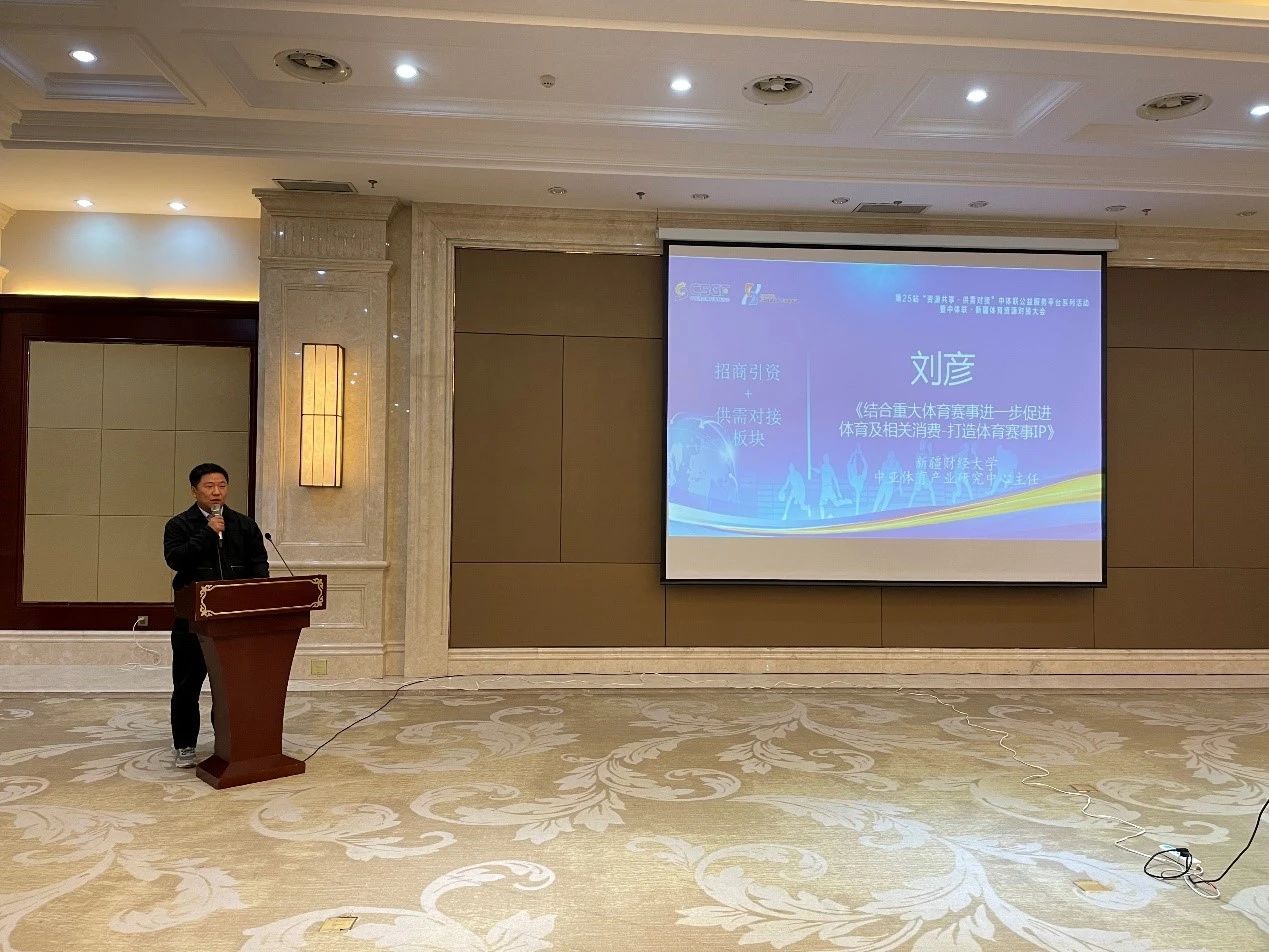 新疆财经大学中亚体育产业研究中心主任刘彦给大家做了《结合重大体育赛事进一步促进体育及相关消费》专题发言。