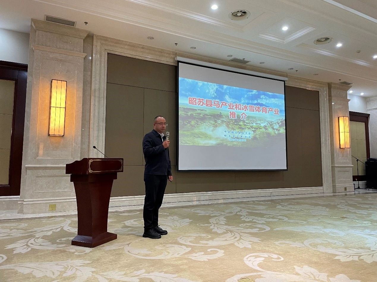 昭苏县畜牧发展中心主任李海围绕伊犁州昭苏县马产业和冰雪产业等优质资源做了现场推介。