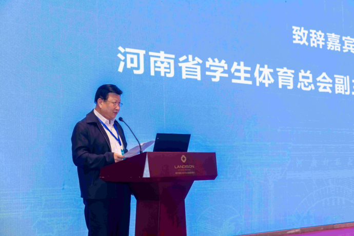 河南省学生体育总会副主席、学工委副理事长林克明教授代表河南省学生体育总会致欢迎辞。林克明教授对代表们的到来表示热烈欢迎,同时向参会代表介绍了近年来河南省学校体育工作开展情况,以及该省在学校体育工作的系列改革和创新举措。