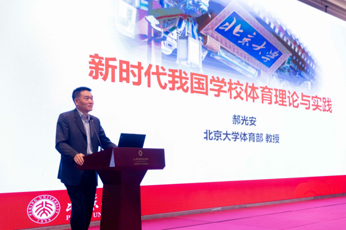 学工委理事长,教育部全国高校体育教学指导委员会公体组副组长,北京市大学生体育协会主席郝光安教授作《新时代我国学校体育理论与实践》的大会报告,从教师层面、学生层面等四个层面,对学校体育建设方面的难点和热点问题进行了探讨。