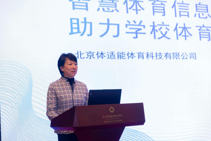 作为国家级高新技术企业及本届论坛协办单位,北京体适能体育科技有限公司多年来专注于智慧体育管理系统、体质健康测试系统的研发与制造。公司销售总监张慕筠作《智慧体育信息化平台助力学校体育高质量发展》的大会技术报告,对企业发展、体适能智慧体育信息化平台、学生体质健康测试系统、课外锻炼系统等产品在学校的应用做了介绍。