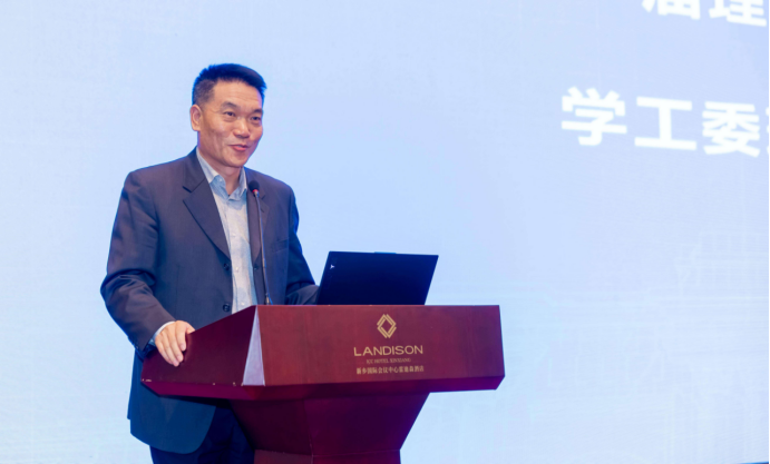 中国体育用品业联合会李桦主席致大会开幕辞。李桦主席向代表们介绍了联合会及分支机构的成立及发展概况,肯定了学工委成立以来在体教融合、校企合作方面开展的系列工作取得的实效,并预祝本次大会取得圆满成功。