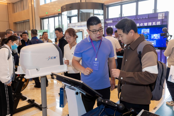 论坛举办期间,组委会组织嘉宾和代表在会议现场设立的智慧体育产品展区现场观摩、交流和体验。当前学校体育建设高峰即将到来,众多参会学校代表都带来了项目建设需求,有的学校主管副校长亲自带队与会。参会嘉宾和代表对现场展示的产品和设备作了详细了解,并亲自体验了部分新型设备。