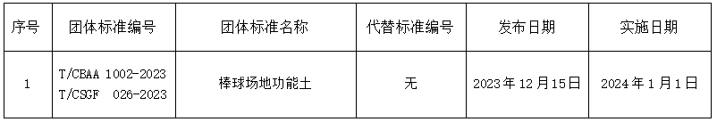 关于批准发布《棒球场地功能土》 团体标准的公告