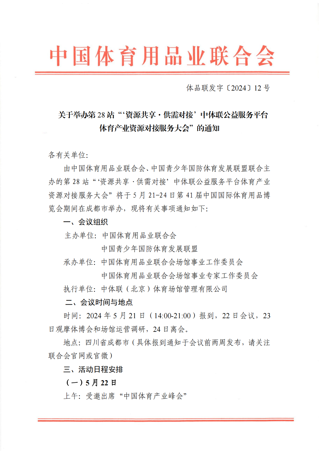 关于举办第28站“‘资源共享·供需对接’中体联公益服务平台体育产业资源对接服务大会(体博会站)”的通知