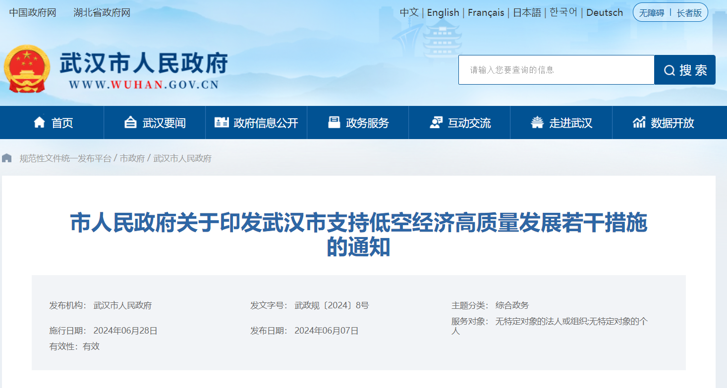 武汉市人民政府《支持低空经济高质量发展的若干措施》