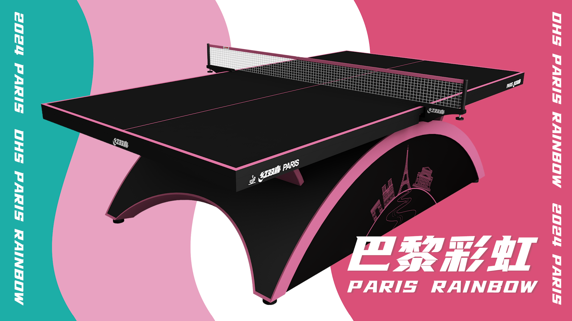 本次奥运乒乓球球台以黑色为主色调,搭配粉色,在设计上让人耳目一新。设计细节方面,边框和底架上的五环立体标志进行了减锐平滑处理,减少运动员的碰擦损伤风险;球台底部结构进行内收,给轮椅运动员留出更多空间,兼顾了奥运会和残奥会的双重用途。