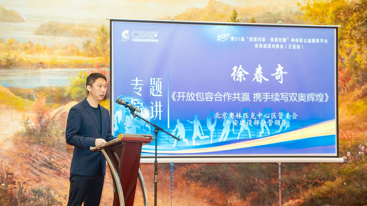 北京奥林匹克中心区管委会平安建设部分管领导徐春奇,以《开放包容合作共赢 携手续写双奥辉煌》为题,详细阐述了北京在双奥成功举办后,如何依托奥林匹克中心区的独特优势,秉持开放包容的理念,加强区域间的合作交流,持续挖掘双奥遗产价值,续写体育产业发展的辉煌篇章,为其他地区如何借助重大体育赛事推动产业发展提供了思路。