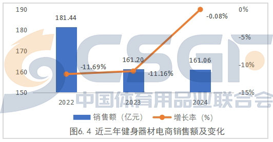 从近三年的情况看,健身器材电商销售连续出现销售额下滑,并且2022年和2023年下滑幅度分别达到11.69%、11.06%,显示健身器材电商零售市场整体上需求偏弱。2024年销售额与2023年相比基本持平,市场出现企稳迹象,给2025年重回增长带来希望。