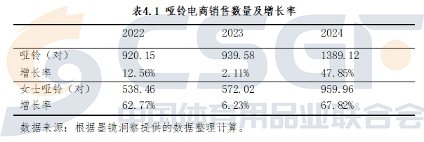 以居家健身最常用器械哑铃为例,电商销售量连续三年增长,2024年销售1389.12万对,大幅增长47.58%,反映了人们居家消费的热情在持续提升。特别是女性家庭健身需求更加旺盛,2024年销售量占比69.11%,居家健身热情高于男性。家用健身器材仍有较大的发展空间,那些设计紧凑、具备便携性、多功能性、智能化、“小而美”的健身器材将继续受到市场青睐。