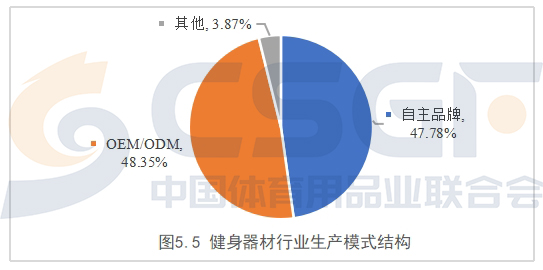作为全球制造业中常用的OEM和ODM生产模式,在健身器材行业也广泛应用。数据显示,健身器材行业自主品牌产品占比47.78%,OEM/ODM产品占比48.35%,其他占比3.87%,OEM/ODM生产超过自主品牌生产。