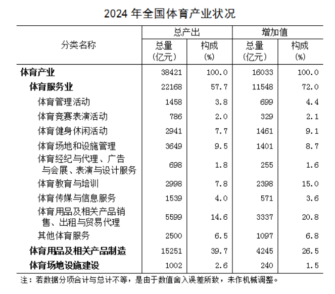 近日,国家统计局和国家体育总局共同发布了2024年全国体育产业总规模与增加值数据公告。