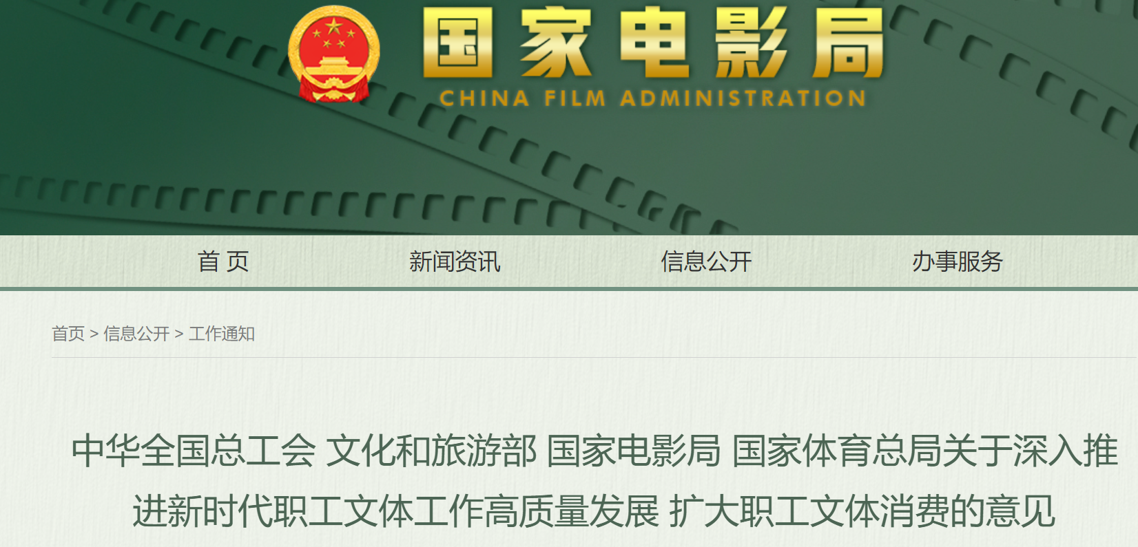 全国总工会、文化和旅游部、国家电影局、国家体育总局联合印发《关于深入推进新时代职工文体工作高质量发展 扩大职工文体消费的意见》,围绕系统推进职工文体工作、扩大职工文体消费作出部署,进一步满足广大职工日益增长的精神文化需求。