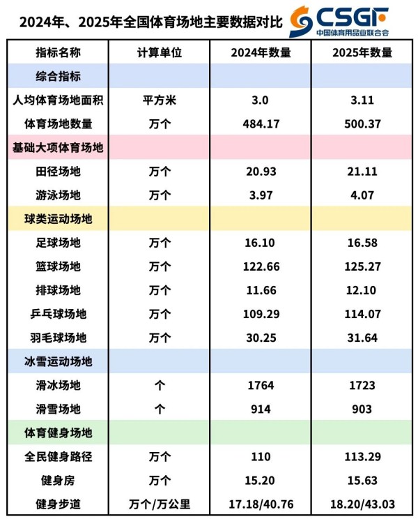人均体育面积3.11平方米,2025年全国体育场地统计调查数据公布