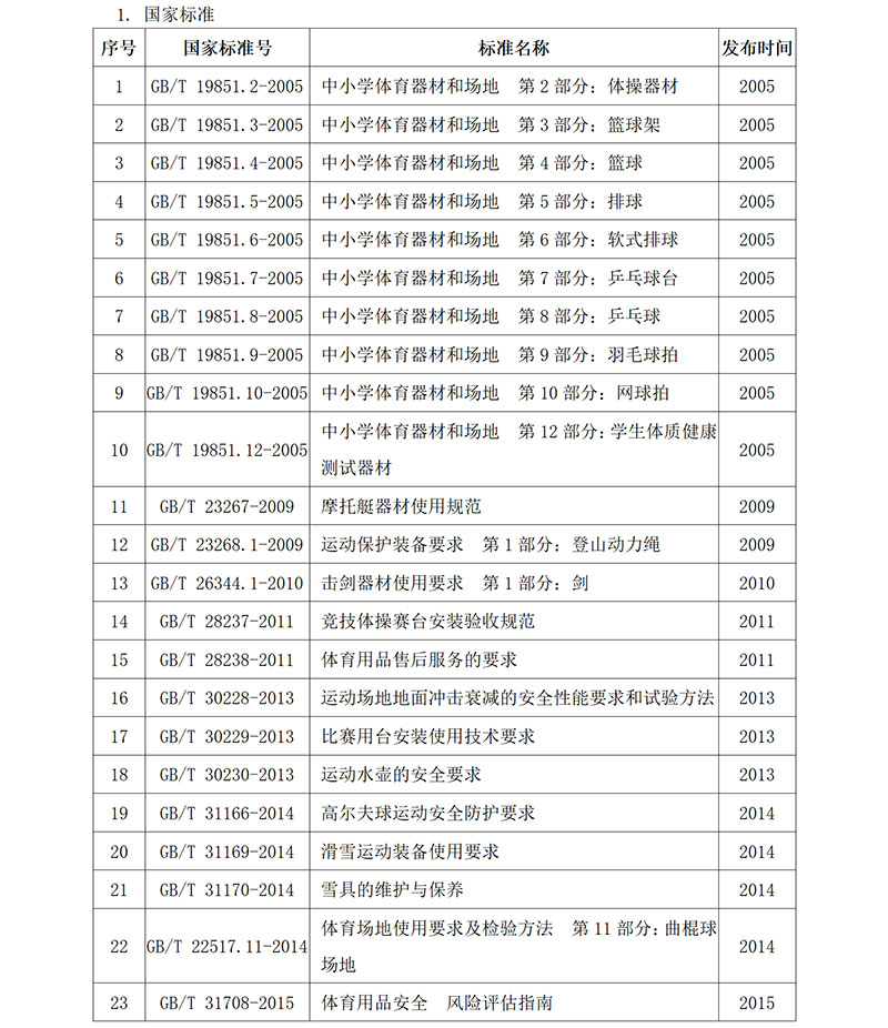 1.全国体育用品标准化技术委员会(TC291),秘书处承担单位为中国体育用品业联合会。