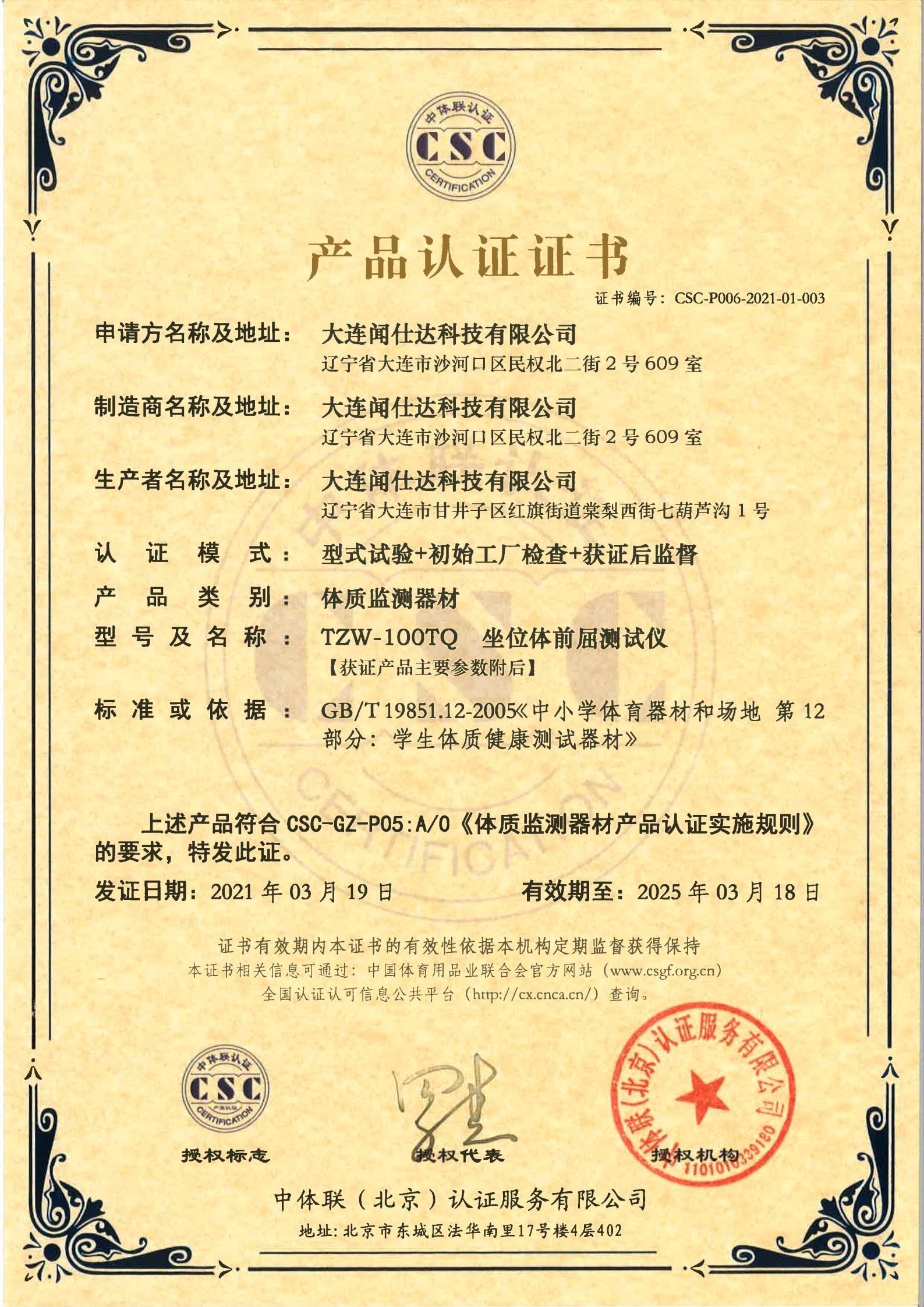 | 体质监测器材 | CSC-P006-2021-01-003 | TZW-100TQ | 坐位体前屈测试仪 | 2021-3-19 | 有效 | 点击 |