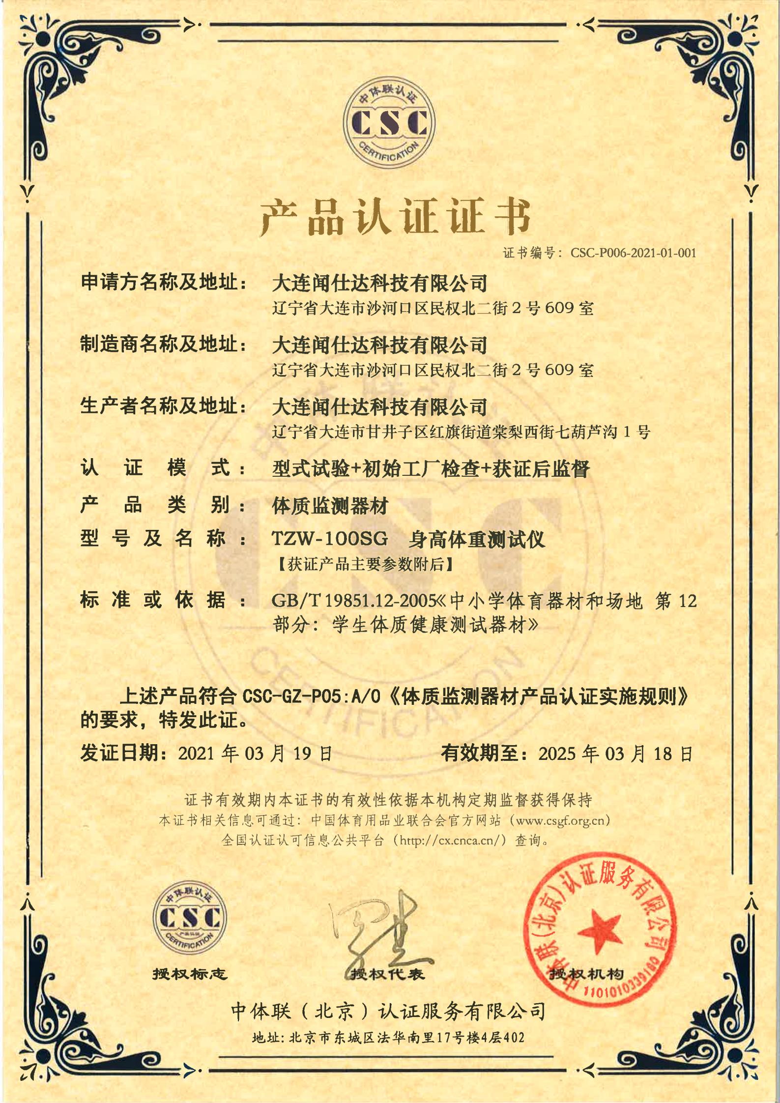| 体质监测器材 | CSC-P006-2021-01-001 | TZW-100SG | 身高体重测试仪 | 2021-3-19 | 有效 | 点击 |