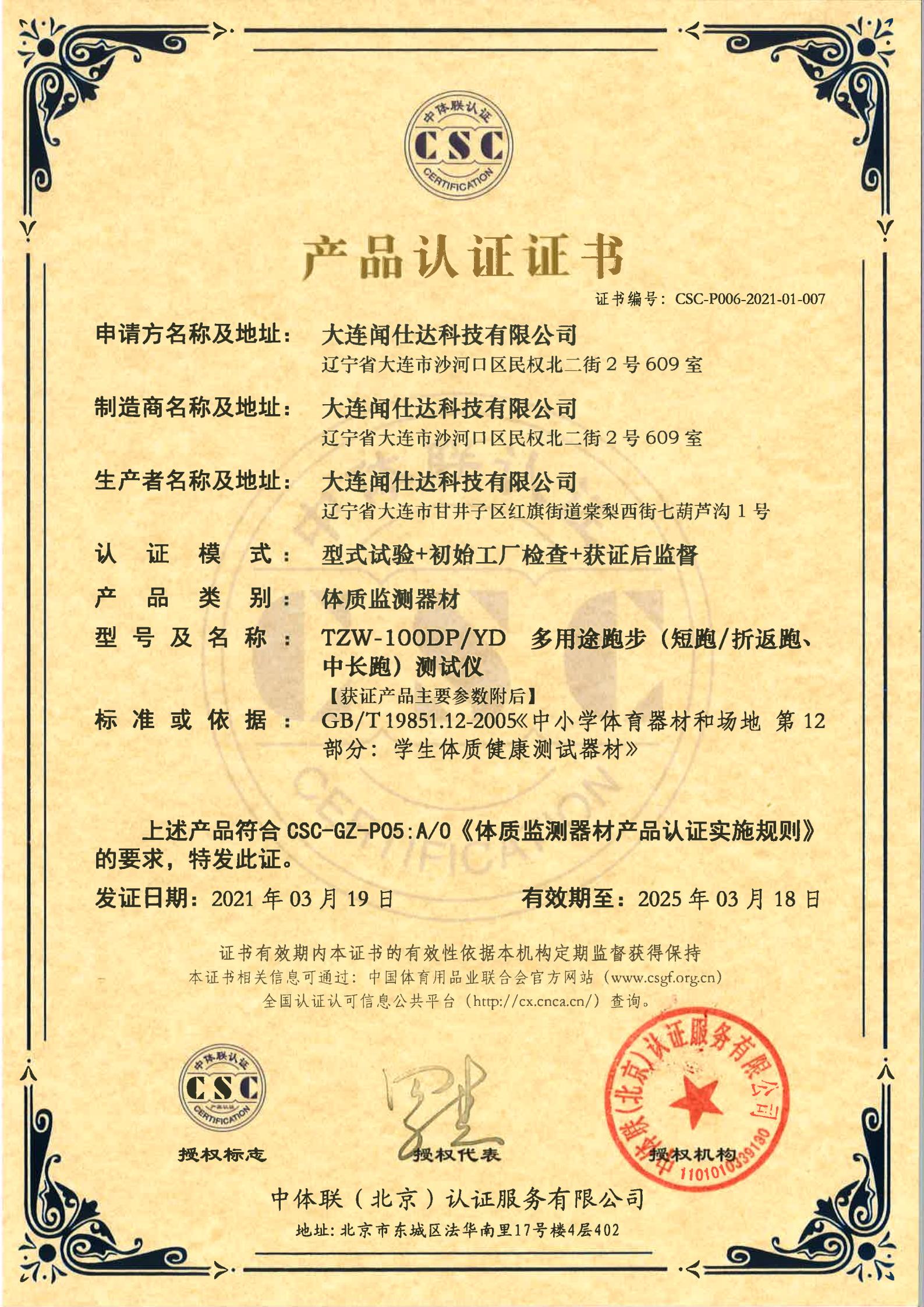 | 体质监测器材 | CSC-P006-2021-01-007 | TZW-100DP/YD | 多用途跑步(短跑/折返跑、中长跑)测试仪 | 2021-3-19 | 有效 | 点击 |