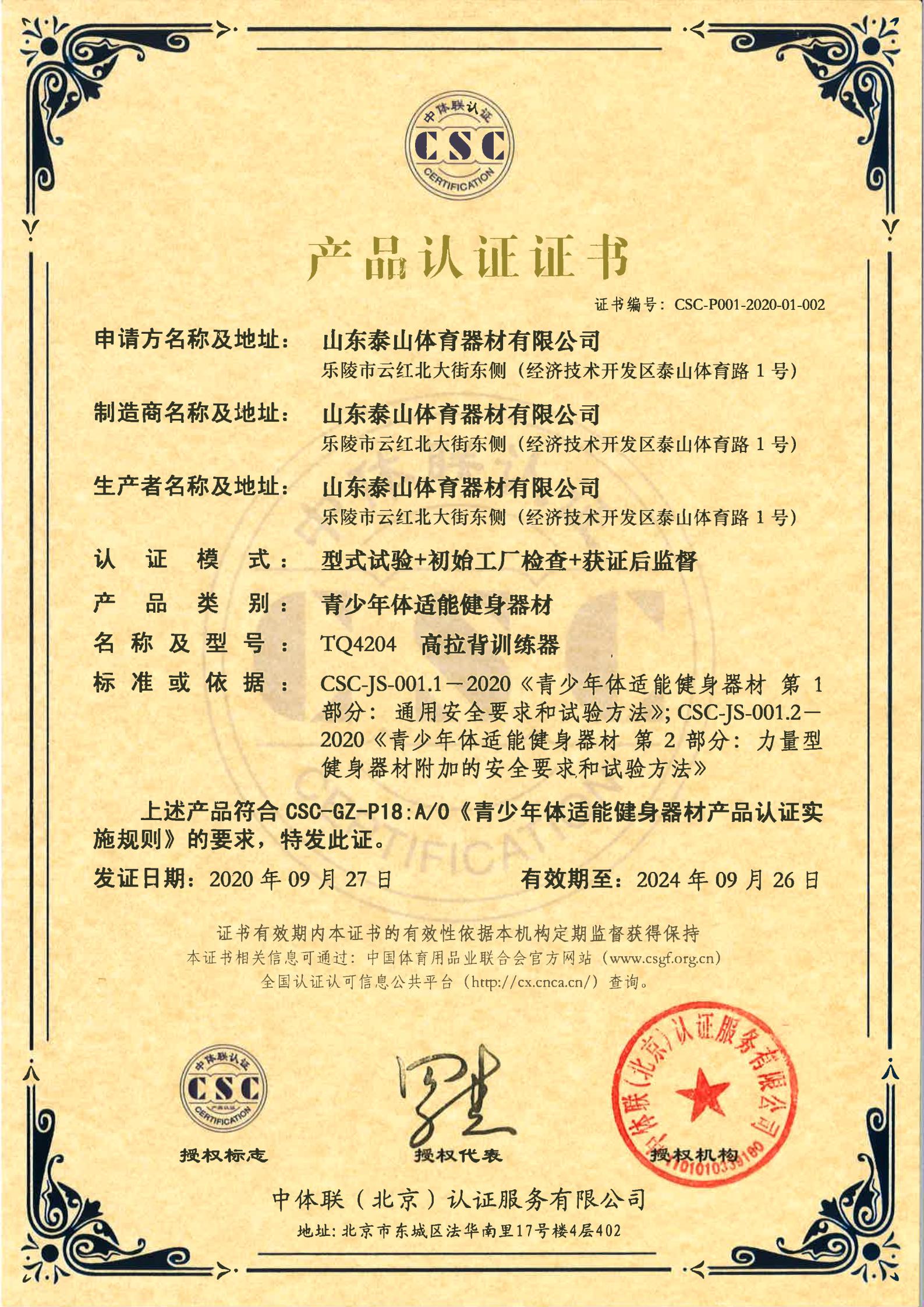 | 青少年体适能健身器材 | CSC-P001-2020-01-002 | TQ4204 | 高拉背训练器 | 2020-09-27 | 有效 | 点击 |