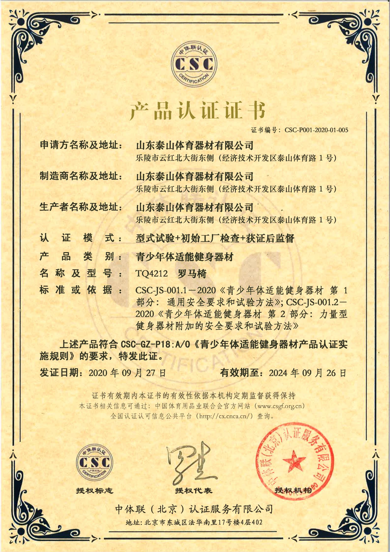 | 青少年体适能健身器材 | CSC-P001-2020-01-005 | TQ4212 | 罗马椅 | 2020-09-27 | 有效 | 点击 |