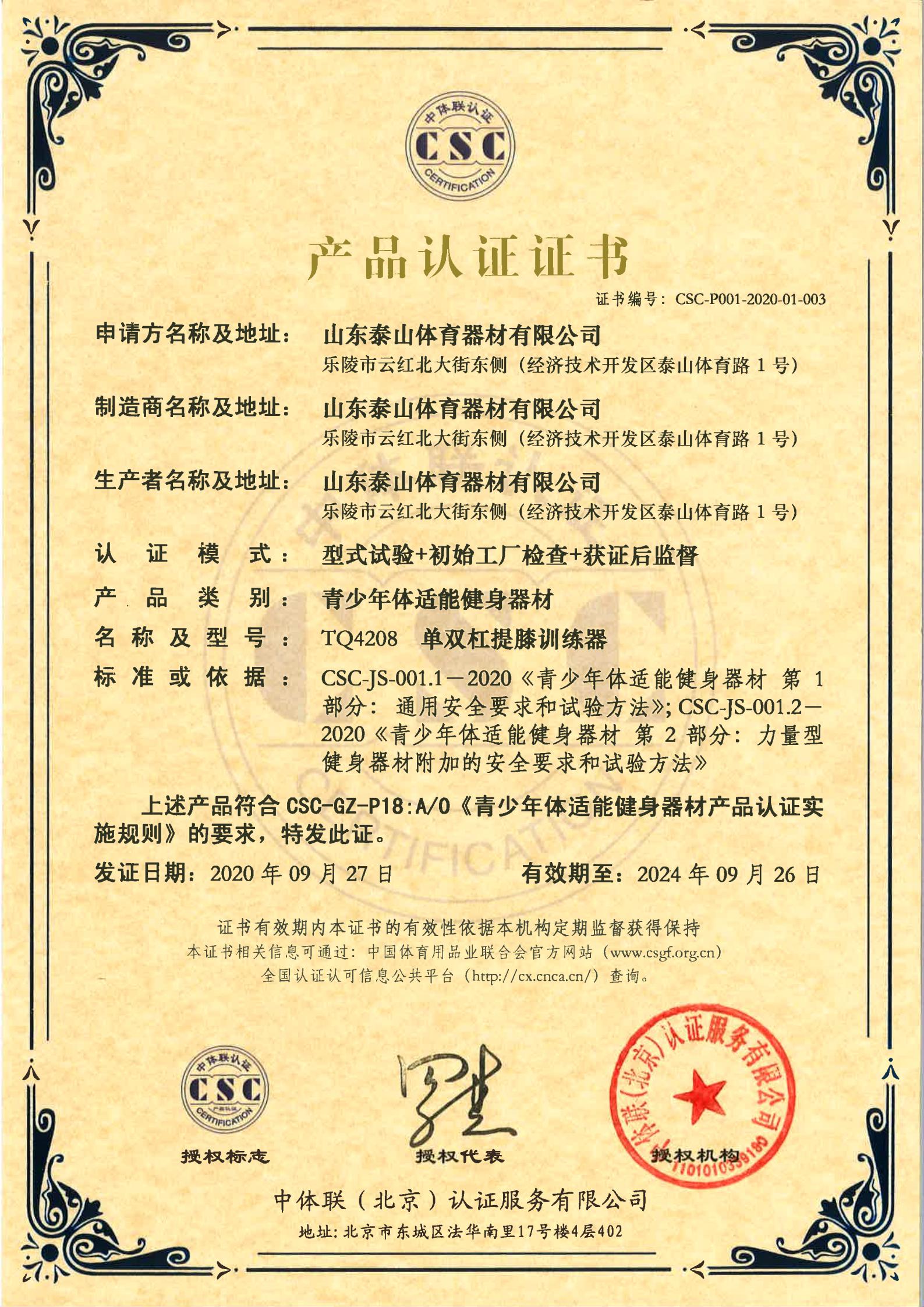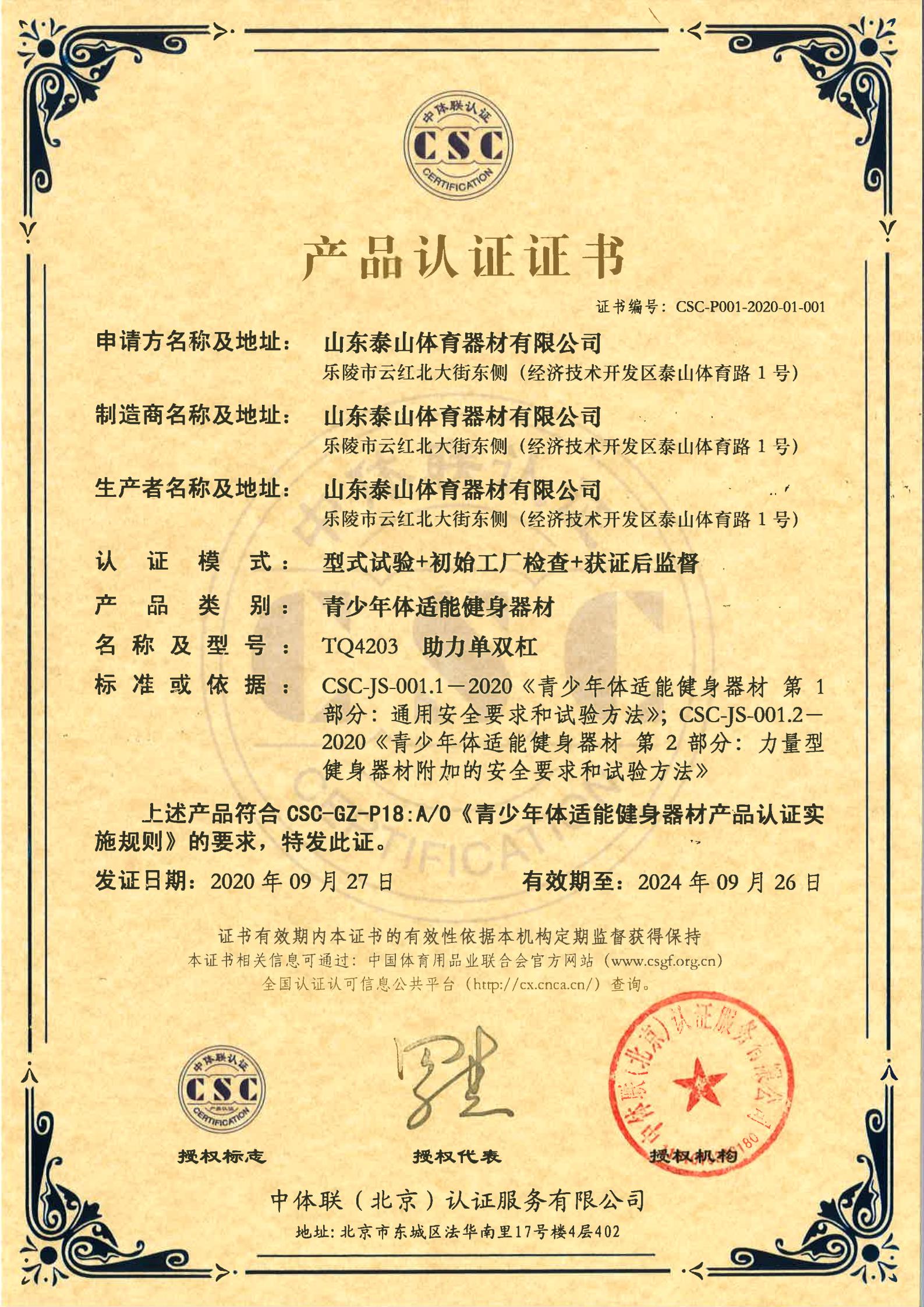 | 青少年体适能健身器材 | CSC-P001-2020-01-001 | TQ4203 | 助力单双杠 | 2020-09-27 | 有效 | 点击 |