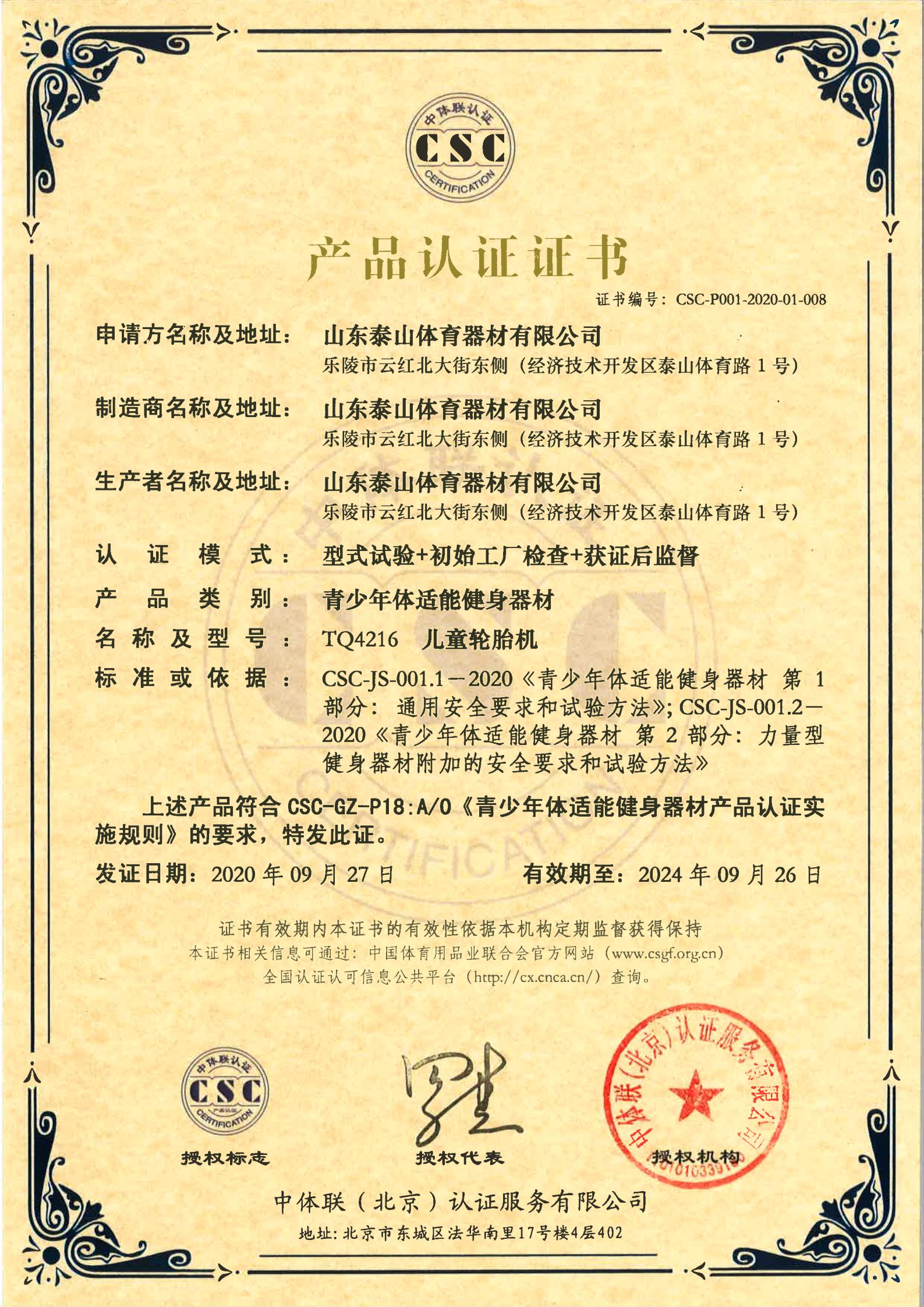 | 青少年体适能健身器材 | CSC-P001-2020-01-008 | TQ4216 | 儿童轮胎机 | 2020-09-27 | 有效 | 点击 |
