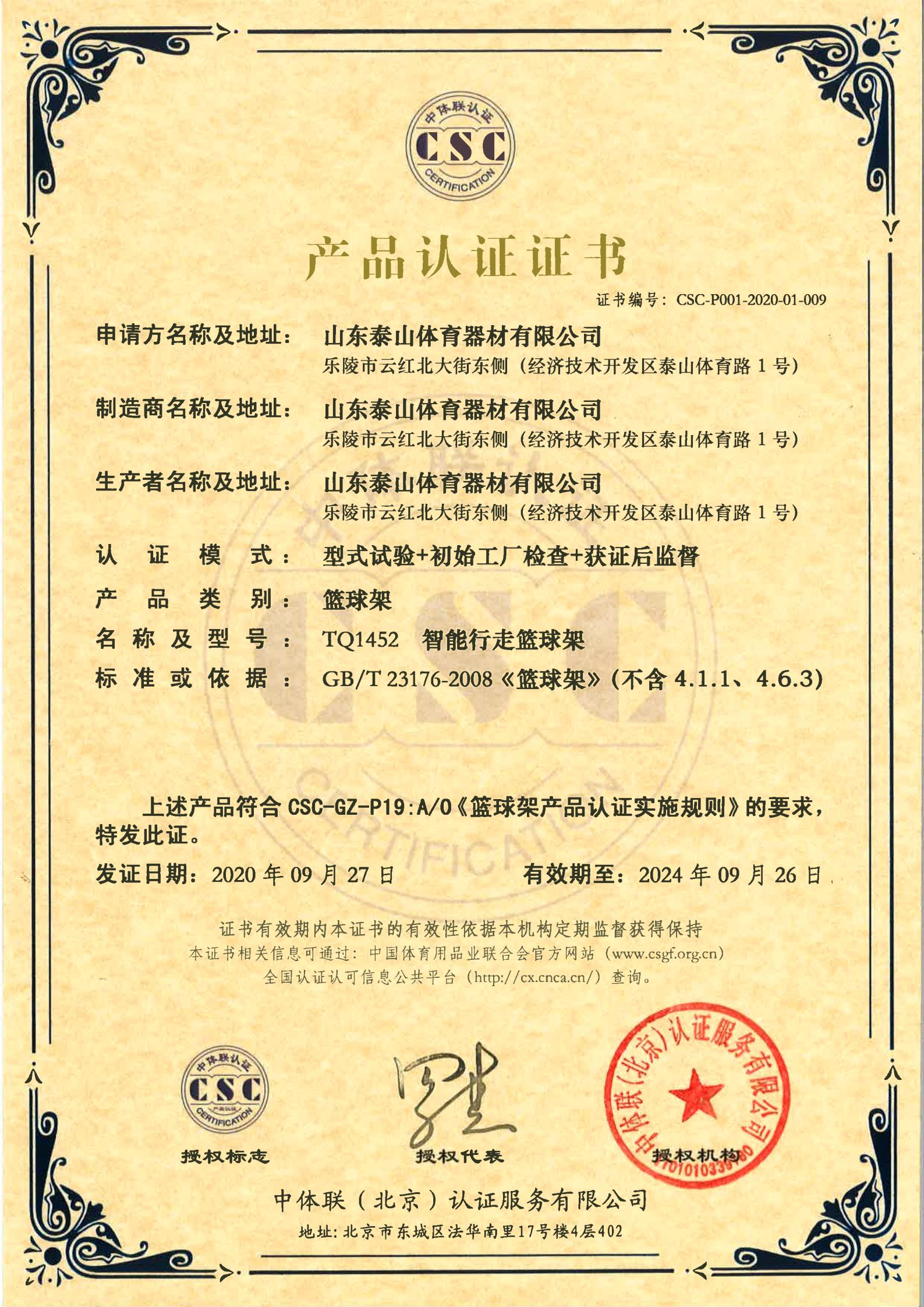 | 篮球架 | CSC-P001-2020-01-009 | TQ1452 | 智能行走篮球架 | 2020-09-27 | 有效 | 点击 |