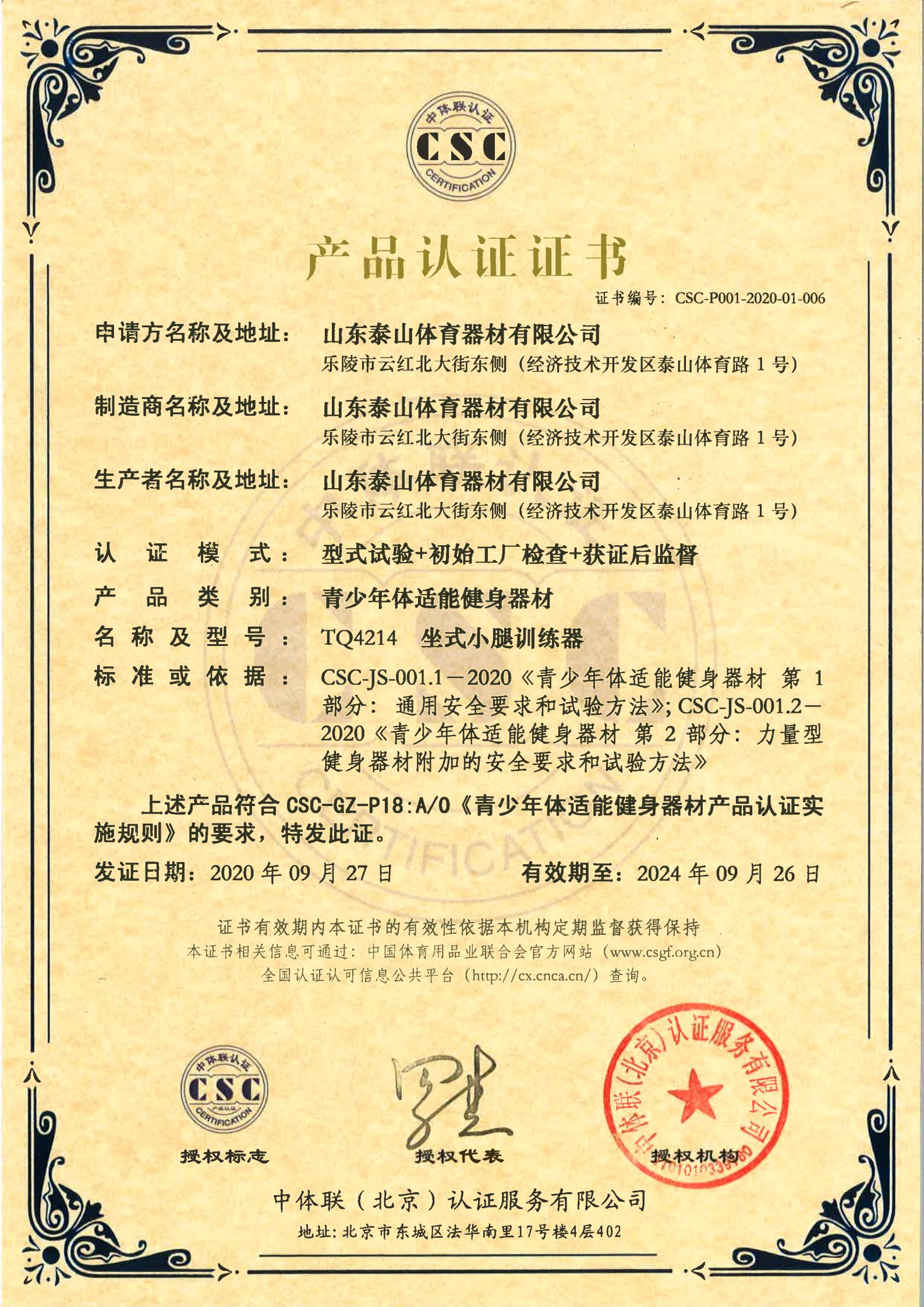 | 青少年体适能健身器材 | CSC-P001-2020-01-006 | TQ4214 | 坐式小腿训练器 | 2020-09-27 | 有效 | 点击 |