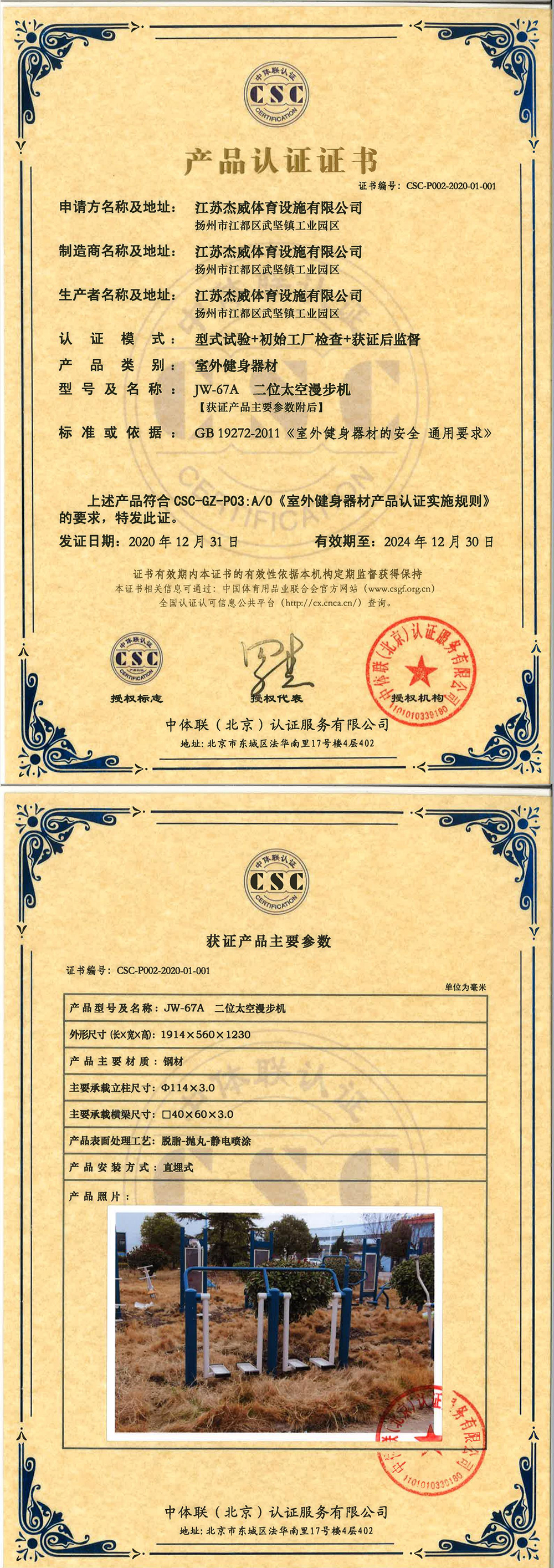 | 室外健身器材 | CSC-P002-2020-01-001 | JW-67A | 二位太空漫步机 | 2020-12-31 | 有效 | 点击 |