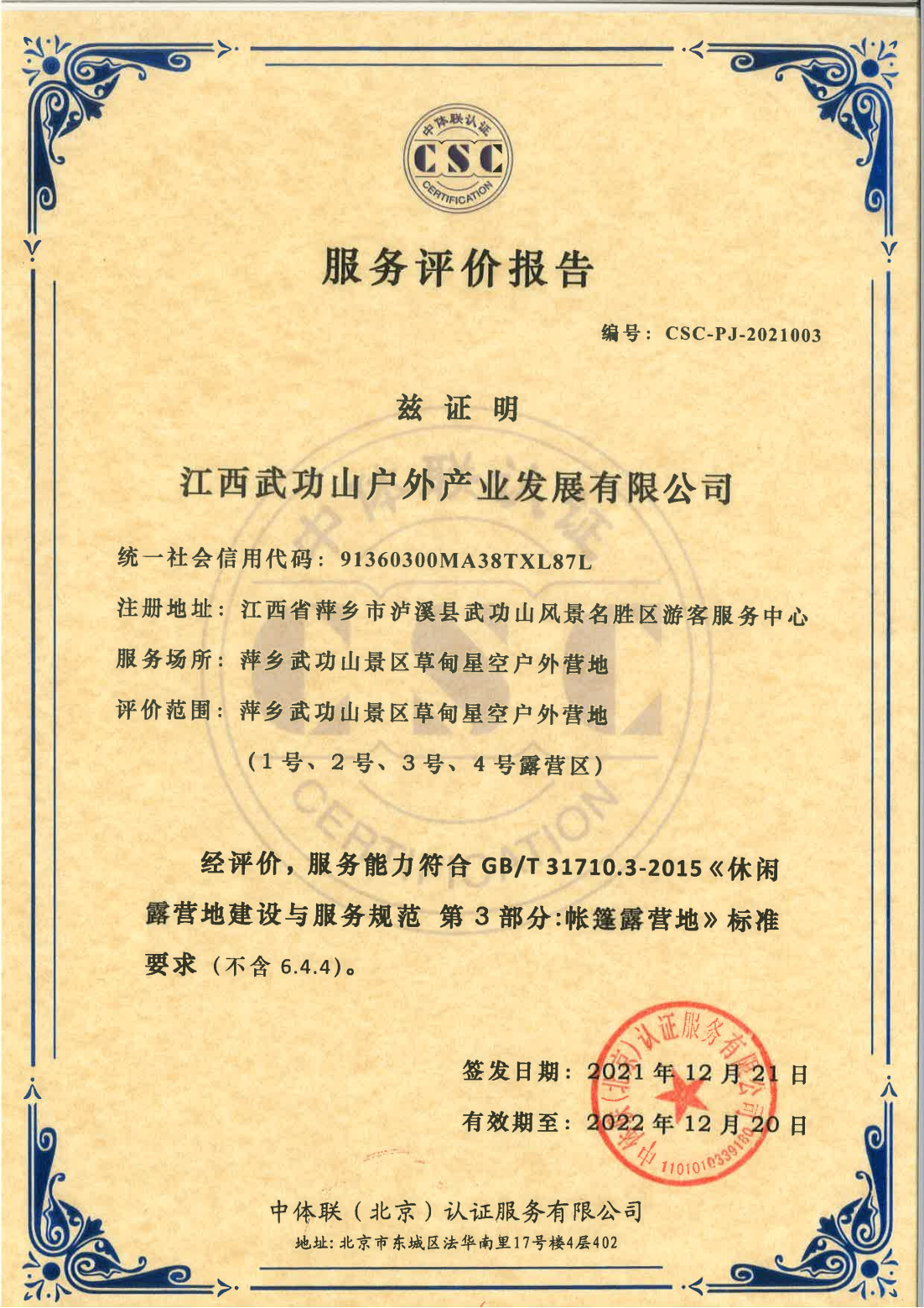 江西武功山户外产业发展有限公司 证书详情(点击)